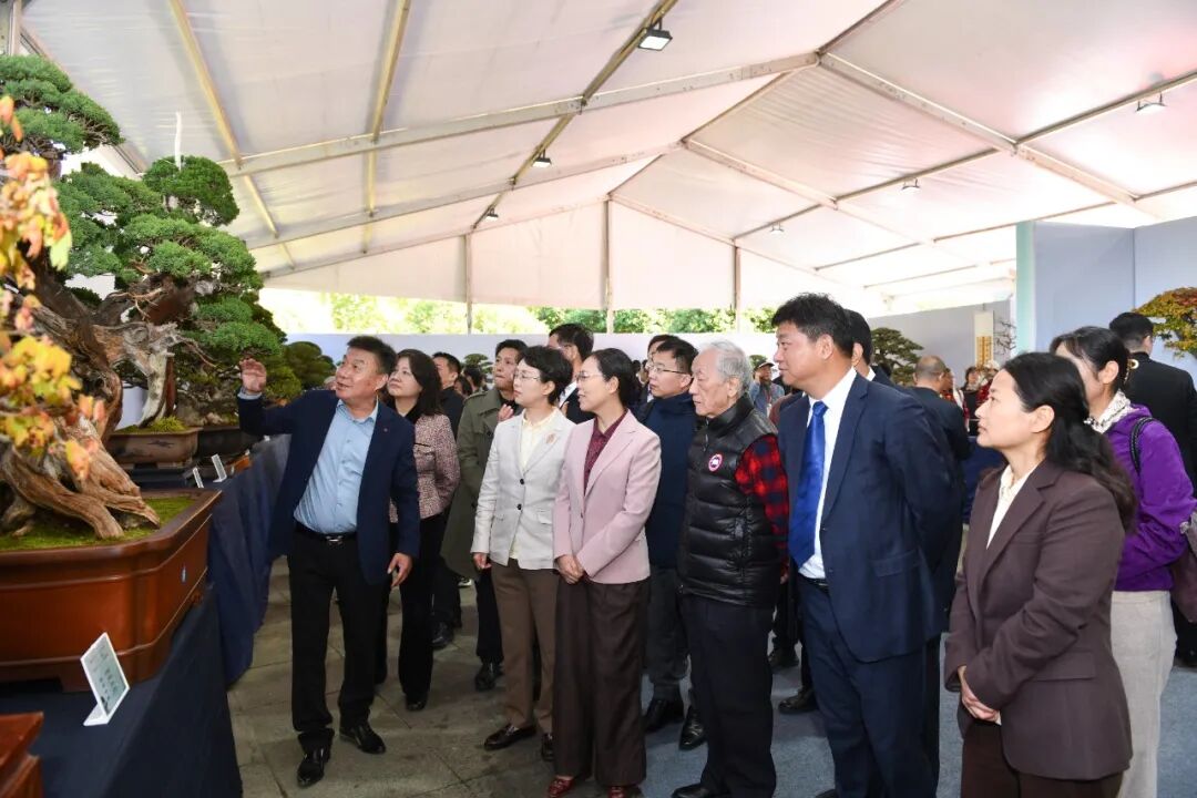 当天,与会领导和嘉宾还一同前往盆景艺术展区,参观两岸盆景艺术家带来的200余件匠心之作。