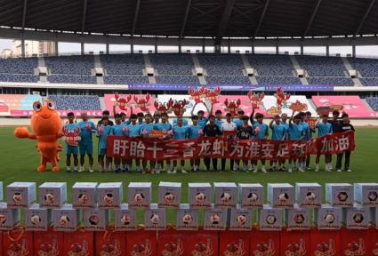 “苏超”开赛以来,我县以球为媒,结合本地特色,找准优势项目,扩大体验式消费场景,着力打造多元化、有特色的夜市第二现场。盱眙精心培育“足球+龙虾” 消费经济,实现足球文化与夜间休闲消费的深度融合,持续为夜经济增添新动能。盱眙体育运动中心的工作人员曾为备战“苏超”的淮安队送去了足球、龙虾和西瓜,建立了紧密的联系。如今,球员们走进盱眙,正是这支球队与球迷深度互动的生动实践。足球与小龙虾的碰撞,体育与市井生活的交融,正让这座城市愈发“有滋有味”。