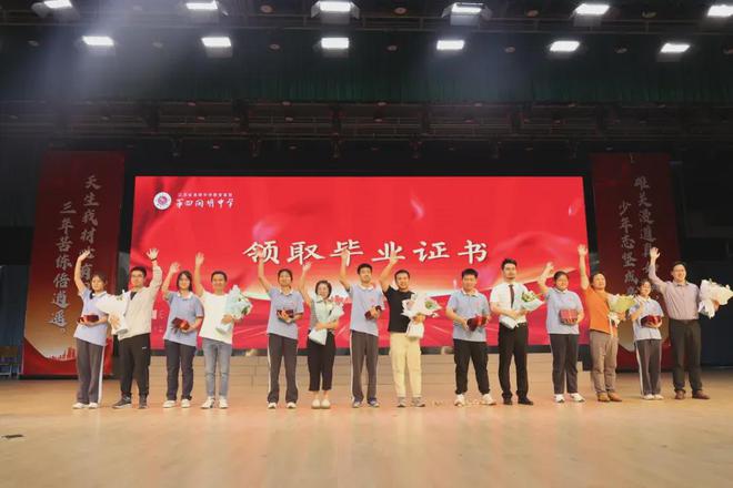 各班班主任老师为学生颁发毕业证书,各班班长从班主任老师手中郑重地接过毕业证书,这一本本薄薄的毕业证书,承载的是同学们充实而沉甸甸的求学之路,祝福他们,追光的少年必定光芒万丈!同时各班班长向班主任赠送鲜花,感谢老师们三年来的悉心教导和辛勤付出。