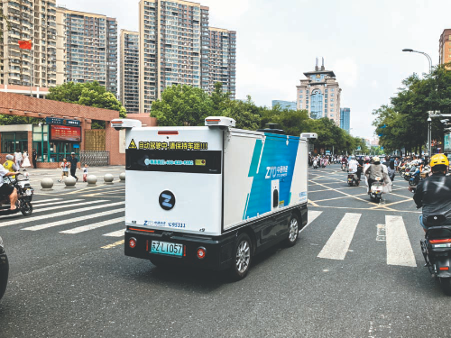 近日,一辆无人驾驶快递车亮相淮安市环宇路水韵天城小区。这是由中通快递淮安分公司引进的新能源无人驾驶快递车。行驶过程中,它会根据实时路况减速、避让或变道。