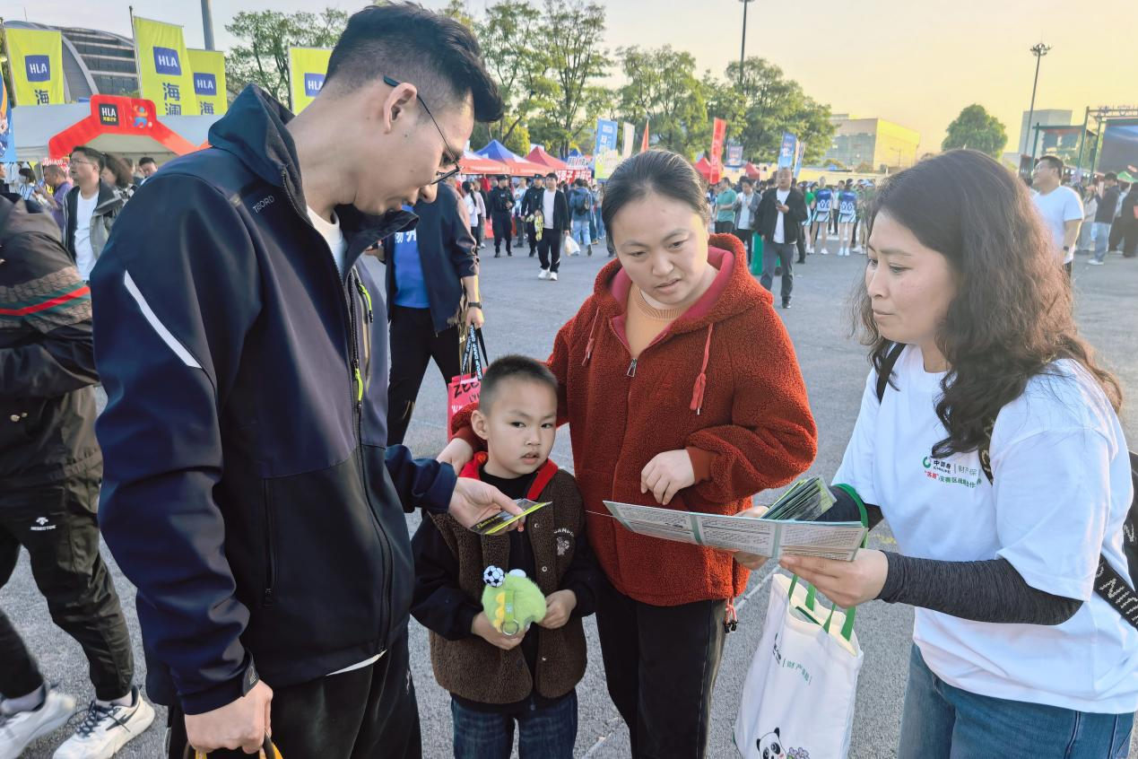 在赛场外围绕群众需求,公司专门设置金融消保宣传专区,组织工作人员面向现场观赛市民开展金融知识宣传。活动中,工作人员聚焦保险保障常识、防范电信网络诈骗、未成年人金融安全教育等内容,通过通俗讲解、互动交流等方式,向家长和小朋友普及基础金融知识,提升群众风险防范意识和自我保护能力。现场还发放了反光贴等实用宣传品,将金融消保宣传与赛事服务有机结合,让群众在感受足球魅力的同时,进一步增强金融安全意识。