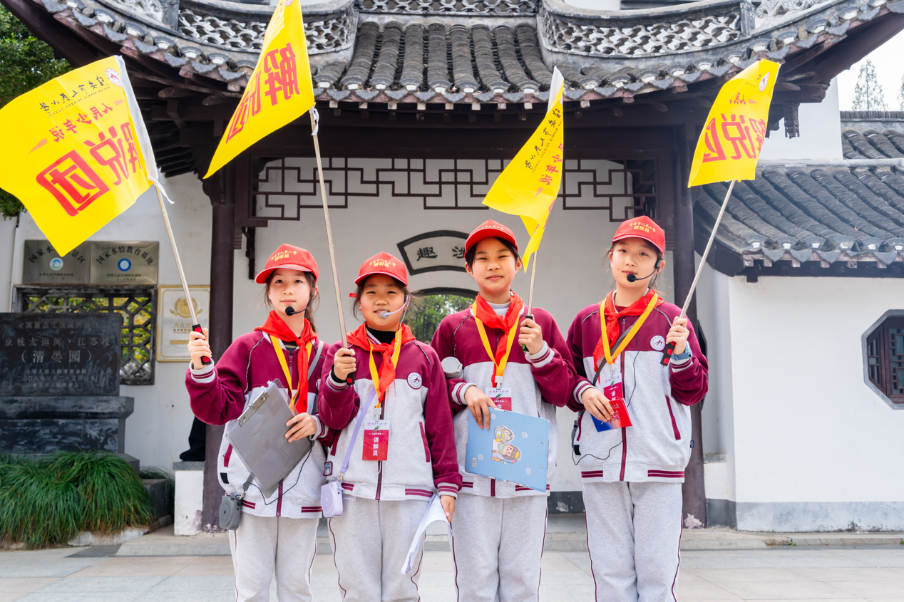 清晏园是中国治水史、漕运史上唯一保存完好的衙署园林,这里的一亭一榭、一砖一石,都镌刻着淮安的岁月故事,也承载着大运河畔的人文底蕴。阳光下的小小讲解员们,身着统一服装、佩戴鲜艳红领巾,用稚嫩而坚定的声音,讲述着“河清海晏”的历史寓意、历任河道总督的治水功绩,以及淮安与大运河的深厚渊源。