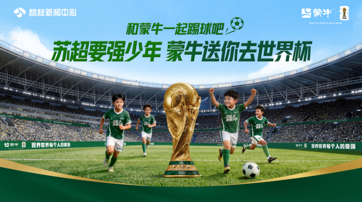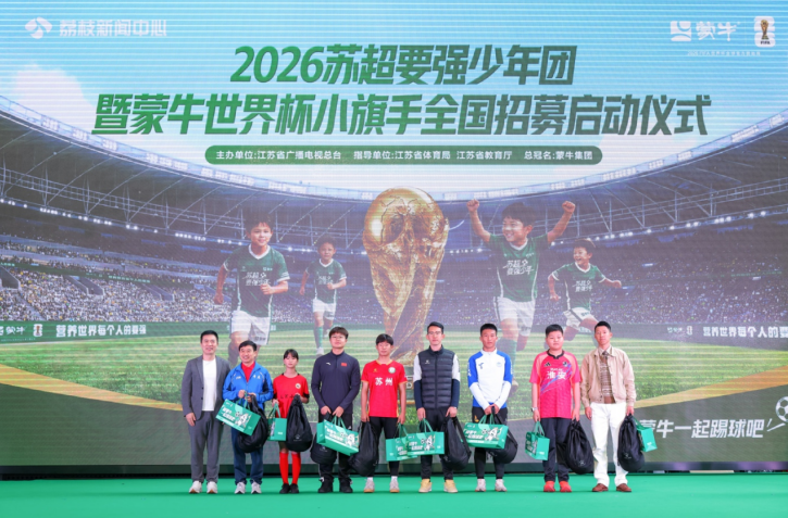 4月20日,由江苏省广播电视总台主办、蒙牛集团总冠名的2026苏超要强少年团暨蒙牛世界杯小旗手全国招募活动正式启动。本次活动以“苏超要强少年·蒙牛送你去世界杯总决赛·和蒙牛一起踢球吧”为主题,面向全国12-17岁热爱足球的青少年招募,将遴选出6位少年成为“世界杯小旗手”,登上2026美加墨世界杯决赛舞台,让中国少年的要强风采闪耀世界顶级绿茵场。