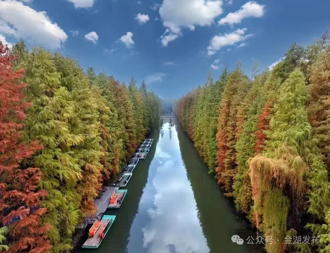 金湖,一座满含诗意与烟火的湖城。漫步荷花广场,尽赏蓝天碧水,湖畔市集和画舫游船动静交织,奏响最动听的湖滨交响曲;