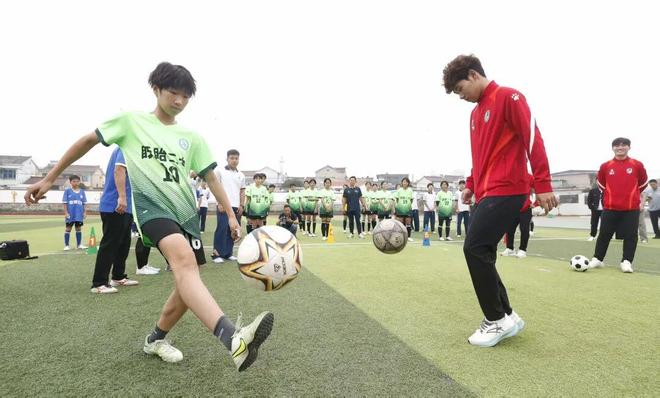 下午,苏超淮安队主教练董松和球员们还走进我县第二中学,为校园足球少年们带来了一堂别开生面的公益足球课。绿茵场上,足球与梦想交织,激情与希望共舞,为校园足球注入了无限活力。